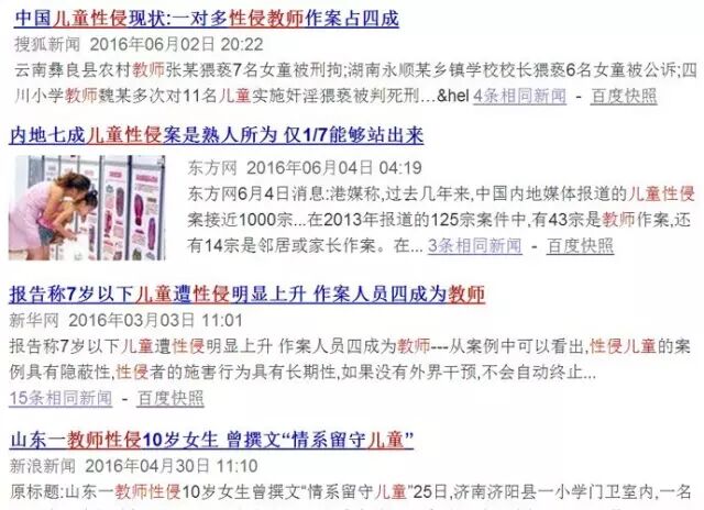 “女童保护”统计显示,公开曝光的性侵儿童案中,一人对多名未成年人施害的案件比例从2014年的15.51%攀升至2015年的28%。