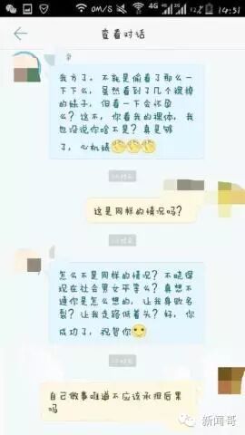 更可怕的是事后女生找出偷窥男生,要求他承认错误,男生竟称:“看一下又不会怀孕,更何况你看了我的裸体(上半身没穿衣服)我也没说啥,是不?”
