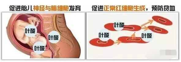 孕妇在怀孕时要补充叶酸,否则可能会导致胎儿神经血管畸形 ,因此叶酸具有促进婴幼儿神经细胞与脑细胞发育的作用。此外,叶酸还能预防贫血。叶酸在人体内以辅酶的形式参与血红蛋白的合成等,从而促进正常红细胞的生成,预防巨幼红细胞性贫血。