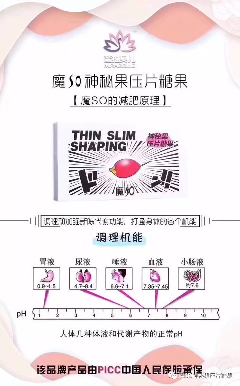 首先增加饱腹感,其次是排除体内毒素淤积并且分解软化多余的脂肪来控制脂肪和淀粉的吸收,再次是调理和加强新陈代谢功能,打通身体的各个机能,加速新陈代谢,从而真正燃烧脂肪达到一个减肥瘦身的效果!魔SO是采用药食同源中药材及发酵果蔬植物粉配制而成,具有润肠通便、排毒养颜、塑型减肥的食疗作用!