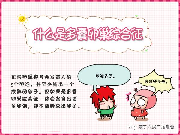 多囊卵巢综合征是生育年龄妇女常见的一种复杂的内分泌及代谢异常所致的疾病,以慢性无排卵(排卵功能紊乱或丧失)和高雄激素血症(妇女体内男性激素产生过剩)为特征,主要临床表现为月经周期不规律、不孕、多毛和/或痤疮,是最常见的女性内分泌疾病。