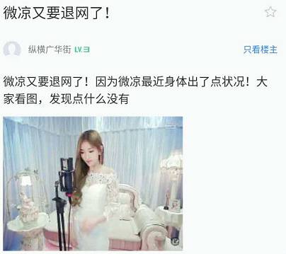 贴吧爆料微凉再次怀孕,要退网?腹部看似凸起。可能是女神发福了