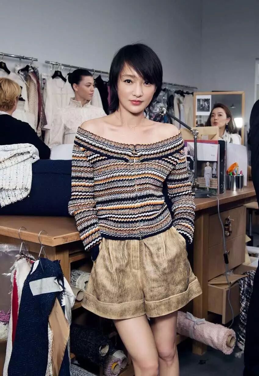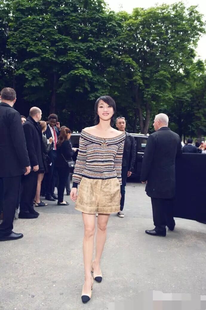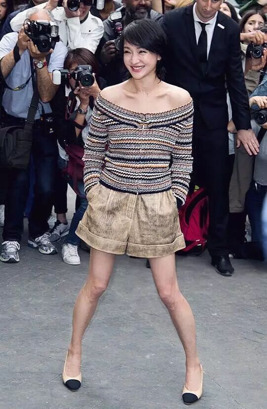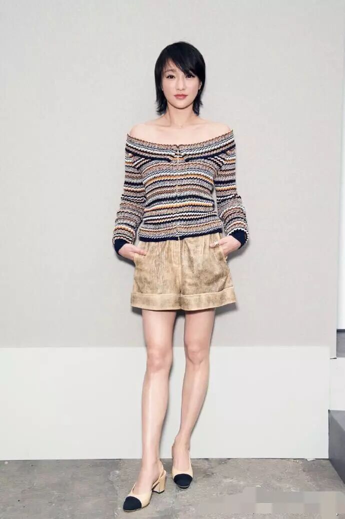 周迅着香奈儿2016/17早春度假系列针织上衣和羊皮短裤亮相