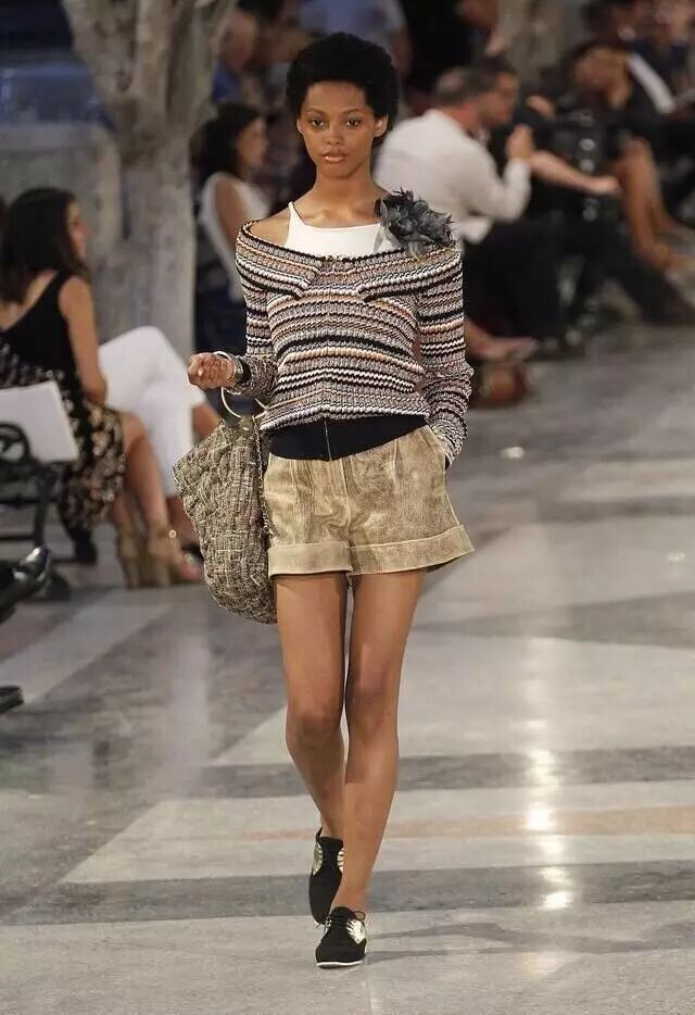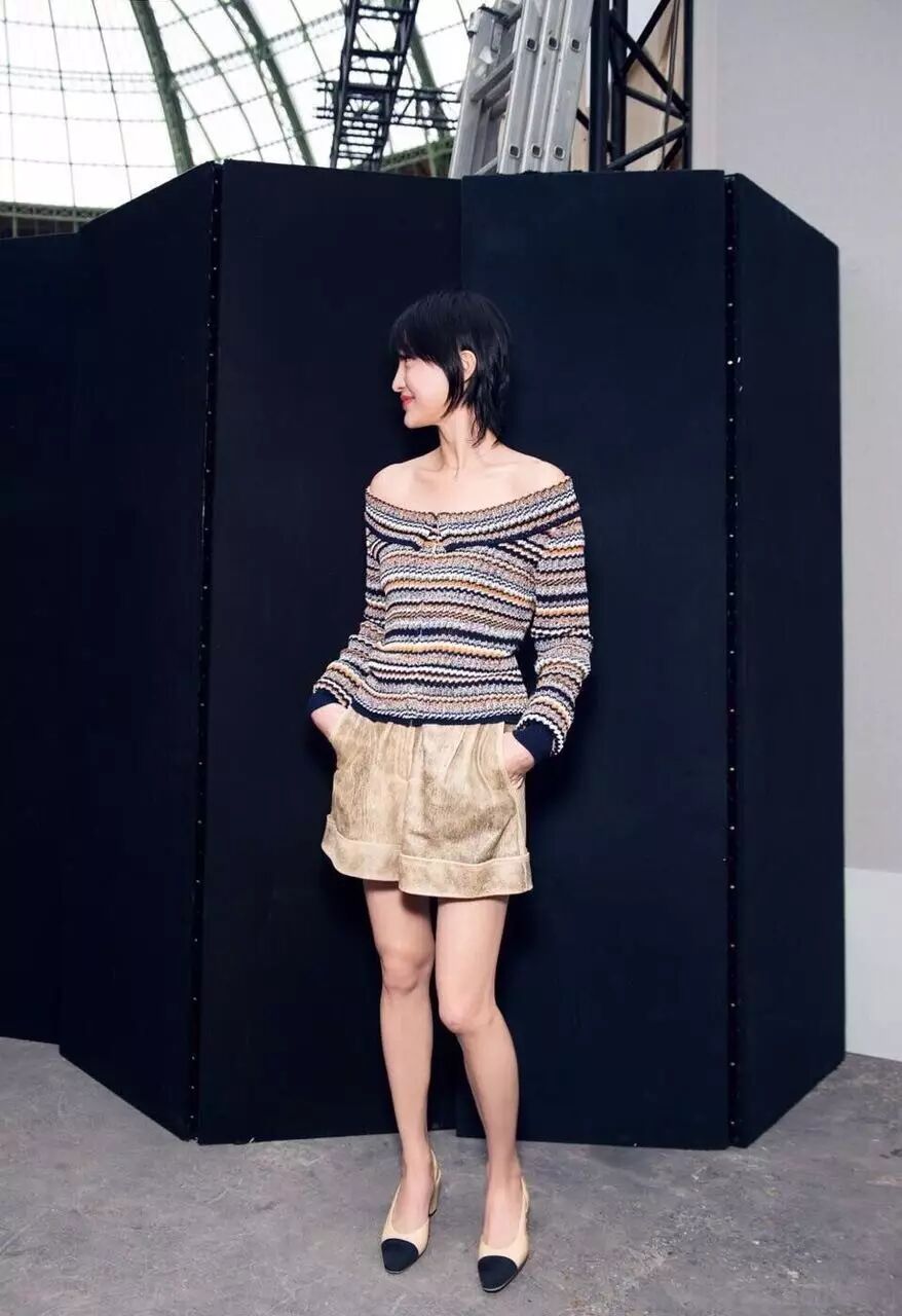 迅公子确实非常适合香奈儿,一字肩配利落的短裤,这一身穿在她身上随意又性感