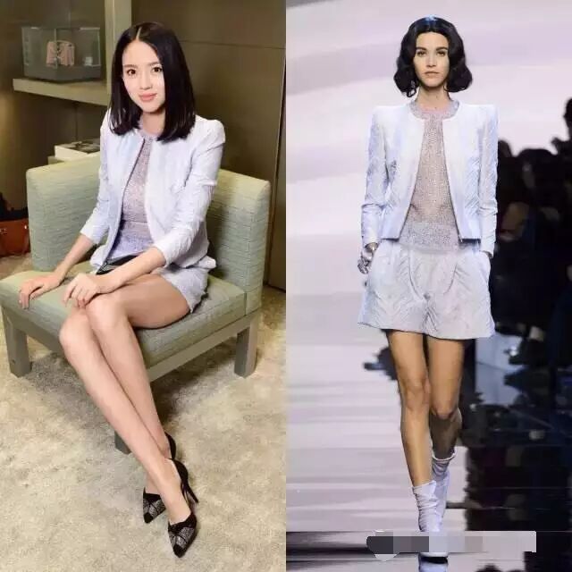 张梓琳这次穿了Armani2016春夏高定系列的光泽感西服