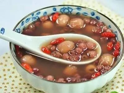 食材:红豆200g、莲子200g、薏米100g、水适量、枸杞适量
