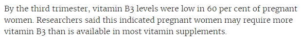 研究人员表示,这意味着孕妇需要的维生素B3比大部分维生素补充还要更多。