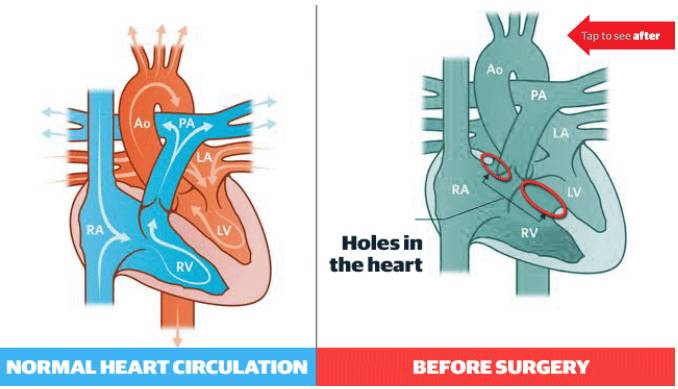 现在,家人只希望这个心脏缺损口能维持相同的大小,但不幸的是,这个“洞”还是伴随着Charlotte长大了。