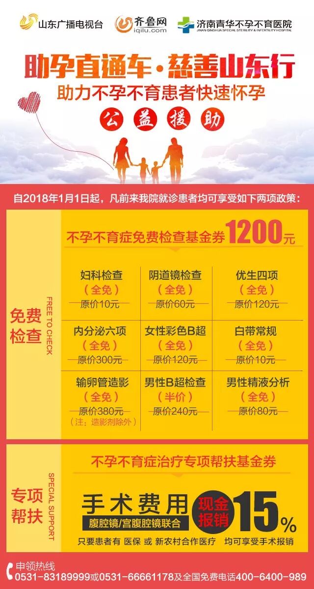 新的一年,除了要进一步开拓进取,不断引进临床国际一流高科技设备和新的治疗技术,主抓怀孕率的同时。2018年,济南青华医院也要继续为广大老百姓做公益和慈善活动,与山东广播电视台、齐鲁网