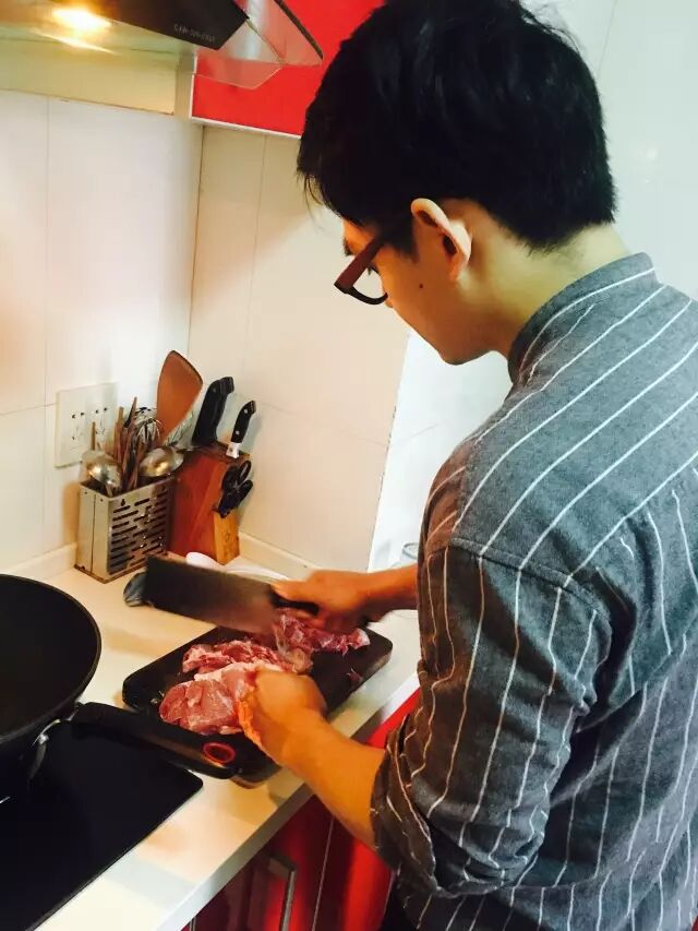 不会做饭的他,因为舍不得老婆学做饭,所以自己按照菜谱一点点摸索学习;