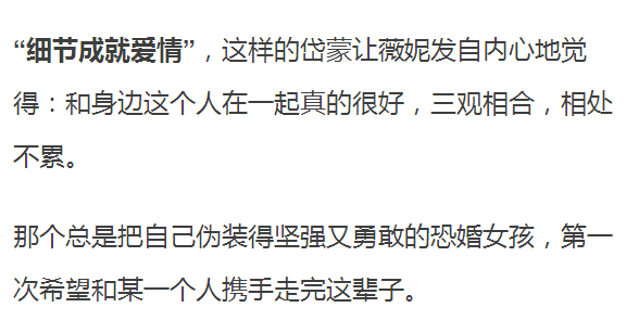 哪怕婚姻生活里有那么多的鸡毛蒜皮和柴米油盐,也会出现一个人愿意陪着你一起分担,让你从此不再惧怕风雨。