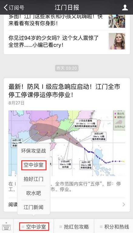 方式二:关注“江门日报”官方微信(jm_daily),点击底部菜单上的“空中诊室”,即可参与互动;