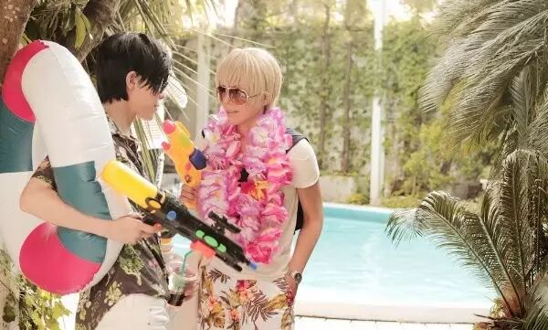 ▼两人一起去泳池的甜蜜画面真是萌的不要不要啊!!!!