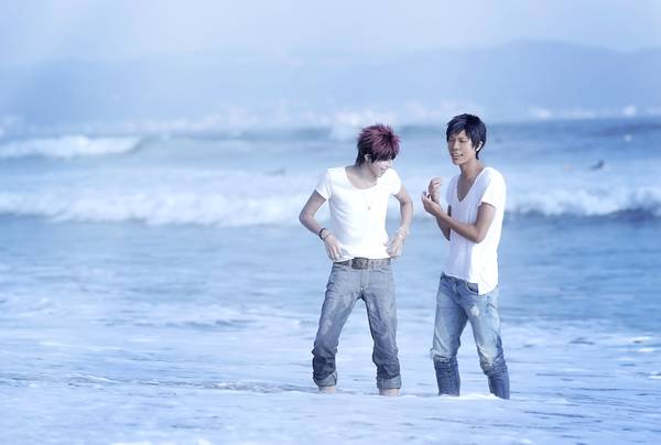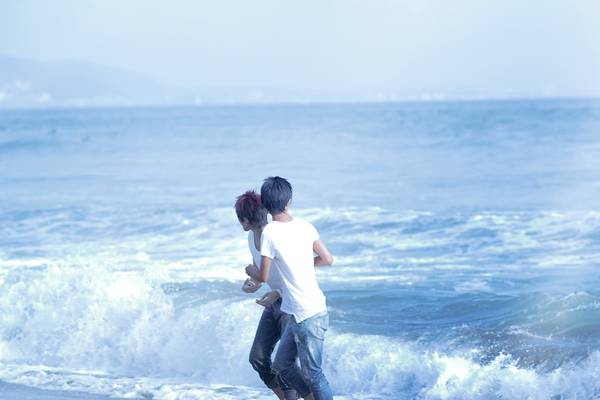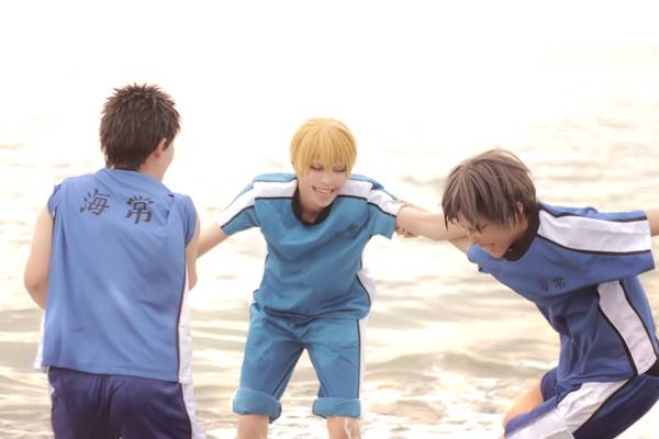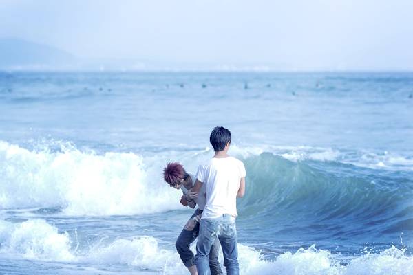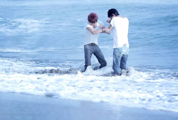 ▼「青峰」跟「火神」在海边的照片真是可爱死了,真的在海边玩起來了