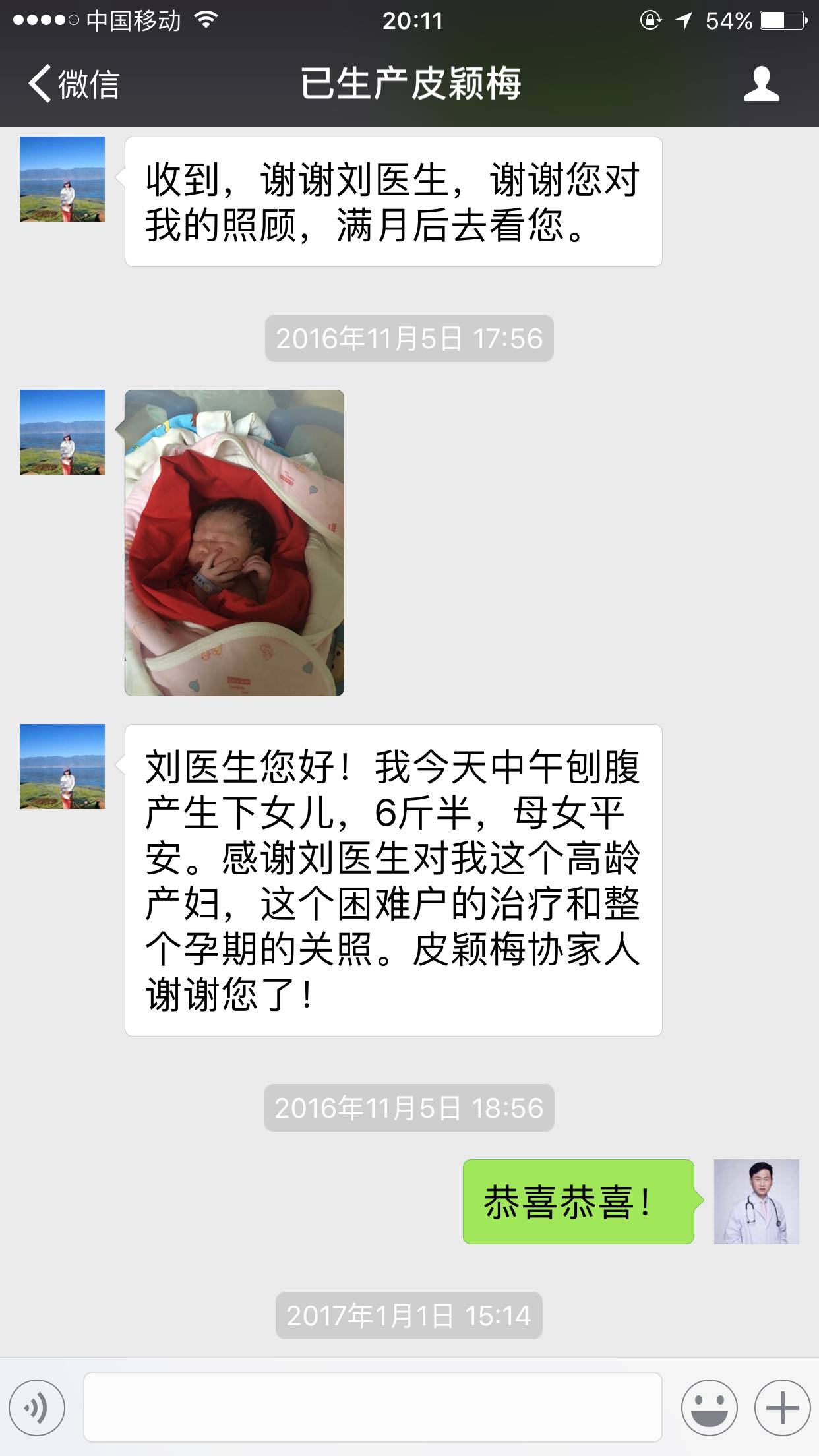 年龄大了别的医生都不愿意接诊,刘医生安慰并鼓励我再试一次,还给我讲他曾治愈的年龄大的病患经历,我才有信心再试一次。刘医生依次帮我调整治疗。当得知我怀孕的消息,刘医生笑了,但我知道他的压力有多大。刘医生为我制定了保胎方案,我的hcg翻倍很好。