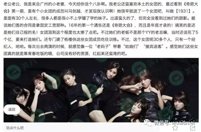 前段时间八妹瞄了一个爆料大号几眼,也发现了不少猫腻。竟然有人打着“小老婆”爆料的头衔在炒作一个广州十八线女团成员的料,重点是还很不走心,描述“她上节目的表现”是什么鬼!(小姐姐,您这不是爆料,我们一般称她为介绍哦)