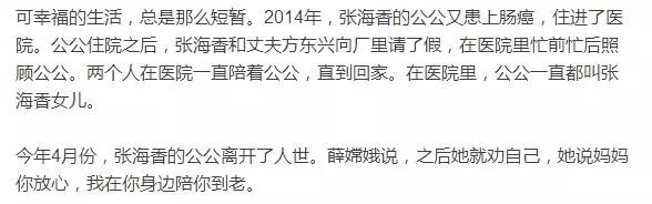 张海香的婆婆薛嫦娥,她说自己不会出这个门,她要养我们,她就跟自己的女儿一样。