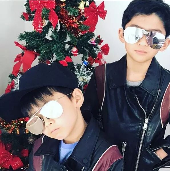 圣诞节将至,不少人都会出街庆祝。潮妈张栢芝今日在Instagram公开两位儿子的圣诞装扮,身穿皮褛的他们在圣诞树下chok爆摆甫士,Lucas插袋、而弟弟Quintus则侧头望镜头,表情十分嘻哈!而另一张更见到Quintus手指指圣诞树,相当老成。不少网民大讚两人靓仔,甚有父亲谢霆锋的影子「成为了小男神」。