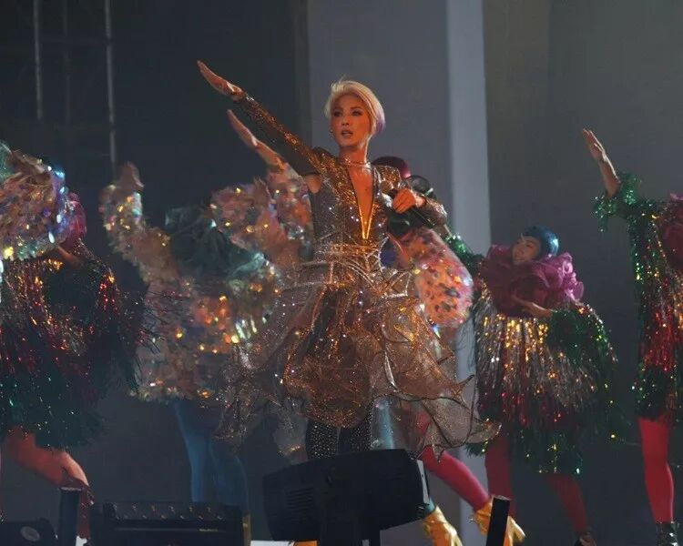 间场大萤幕播出影片怪兽「趷趷刚」对地球大肆破坏,千嬅坐在太空船用激光枪打败怪兽,囝囝在台下看得兴奋拍手。接着,千嬅换上黑色Deep V紧身连身裤,以女侠造型出场,大唱《Wonder Woman》、《新世纪福音战士》、《烈女》,除劲唱热舞,还有踢腿、侧滚翻及打侧手翻,演出突破又落力。