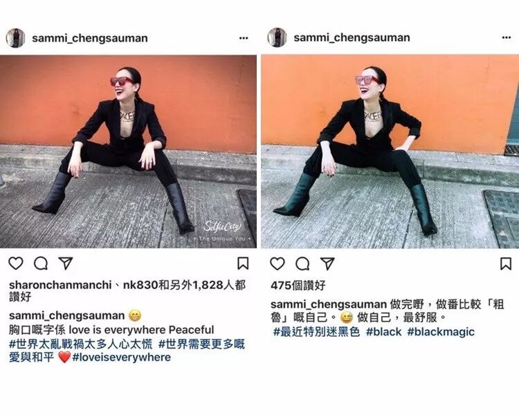郑秀文今日继续发长文鼓励有抑鬱的朋友们,「你们的感受,我懂。共勉之。爱你们。」,然后再发正能量,连心口都打开,露出排骨胸,为展现胸口的字「love is everywhere Peaceful #世界太乱战祸太多人心太慌 #世界需要更多嘅爱与和平 ❤」。几乎是同一张相,Sammi再发一次,补个留言说:「做完野,做番比较『粗鲁』嘅自己。做自己,最舒服。」