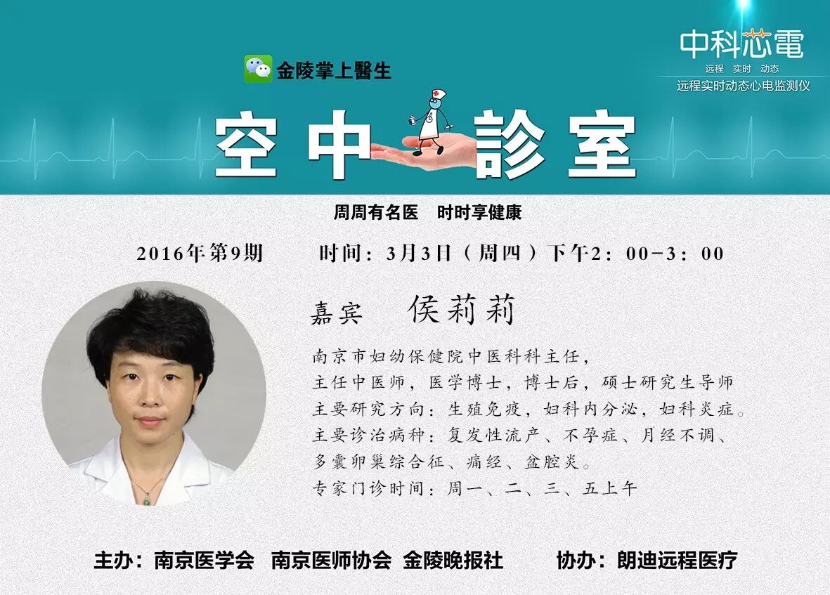 南京市妇幼保健院中医科科主任侯莉莉坐诊空中诊室,为大家答疑解惑!