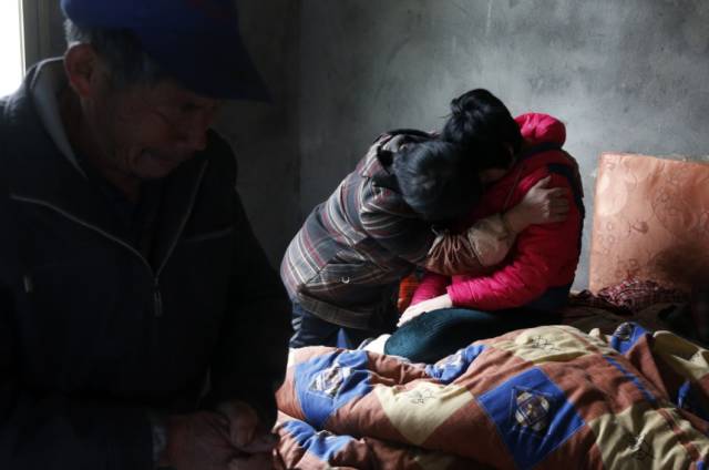 旁边的爷爷老刘,已经69岁的汉子,背对着两人,紧紧攥着自己双手,老泪纵横。