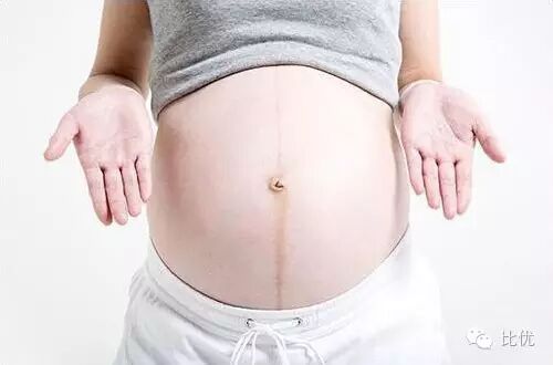 而怀孕期间出现的妊娠中线,则是每个人还没有怀孕前身上原本就有的纹路:那是从肚脐到耻骨间,所出现一条极不明显的白色纹路,到了怀孕中期,有些白纹就会因为颜色变深,成为一条清晰可见的黑纹,甚至有些孕妇的黑纹还可能会向上延伸,到达胸线的位置。