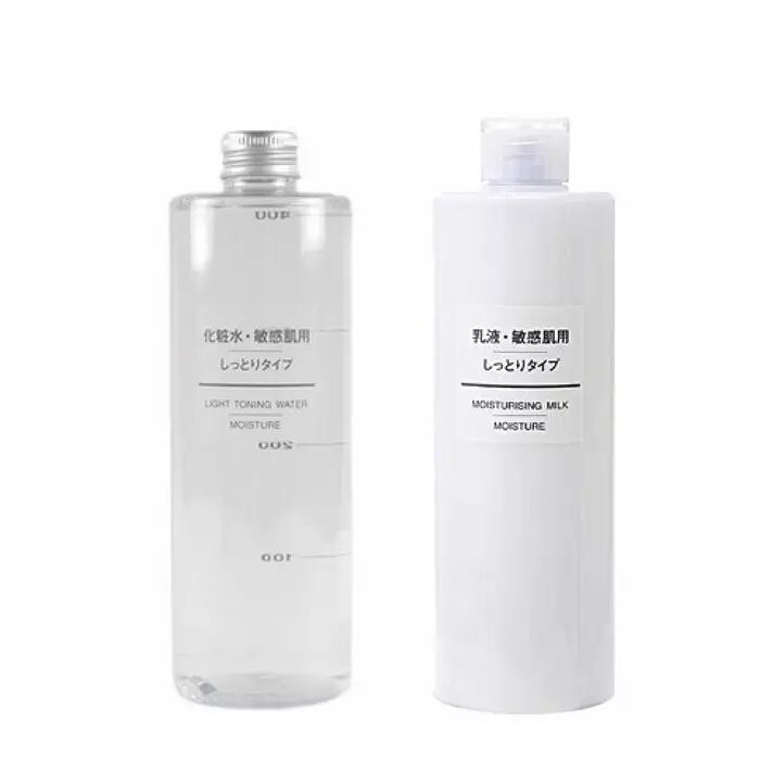 无印良品的敏感肌系列,是指产品没有香料,酒精,矿物油和防腐剂的添加,不容易引起皮肤的不适,低刺激,很天然,是基本的给皮肤提供保湿滋润的作用。这套是200ml规格的,性价比超高。