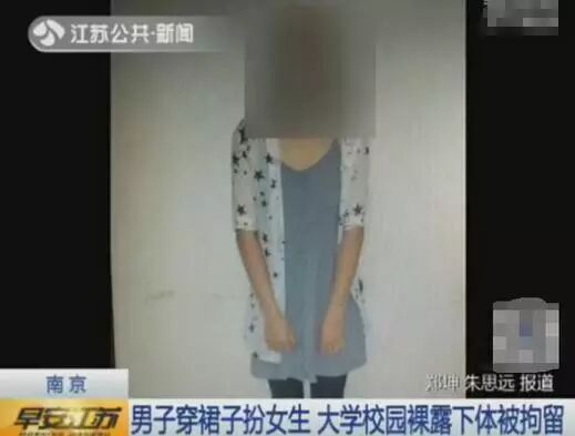 他穿裙子扮女生,为了寻找快感大学校园里裸露下体。近日,南京某高校学生回宿舍的路上,冲出一个穿着裙子的黑影,该“女生”竟掀起裙子对她们露出下体!被抓后,男子称因工作压力大出现怪癖,已来过校园3次。目前该男子被拘留十天。