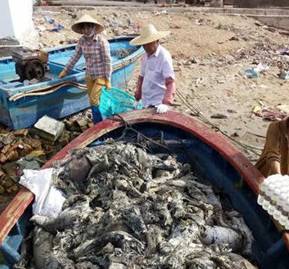 连日来,在万宁市和乐镇港北港与小海附近,局部水域发现大量死鱼,引发当地居民热议。且因连日来高温持续,死鱼漂浮在海面上散发恶臭,万宁市海洋与渔业局获悉情况后已立即组织人员到现场调查并对死鱼进行打捞。调查后发现,发生死鱼的原因,主要是因为这一带网箱相对密集,连日来高温烈日持续,导致海水盐度升高,海水含氧量降低,引起网箱内的鱼出现少量死亡的情况。