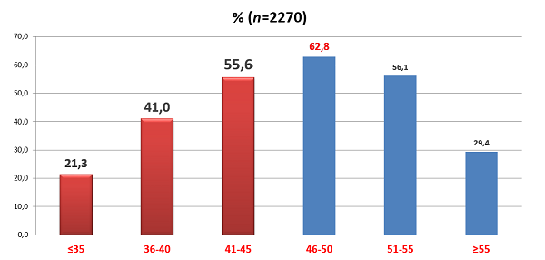 图1 不同年龄人群中子宫肌瘤的发病率