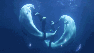 白鲸通常群居,成为鲸群,它们社会性很强,是鲸类王国中最优秀的“口技”专家,擅长用声音交流,同时也能发出几百种声音,而且发出的声音变化多端。