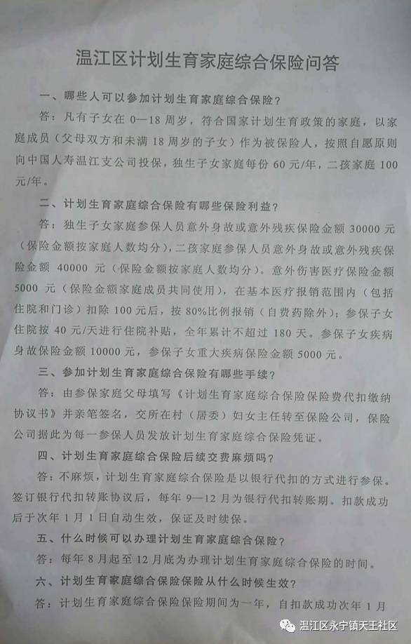 凡有子女在0--18周岁,符合国家计划生育政策的家庭,可以自愿申购该保险,其价格为:独生子女家庭60元/年/家庭,二孩家庭100元/年/家庭。每个家庭限购两份,保家庭包括大人小孩在内的三人或四人。