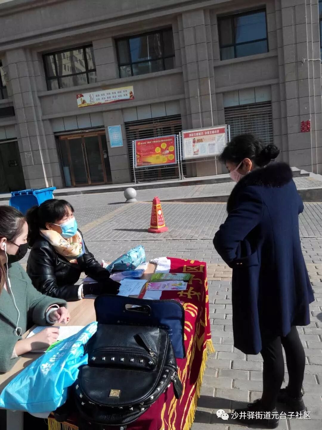 元台子社区工作人员在辖区29佳园宣传计划生育意外伤害保险,并为居民现场办理。