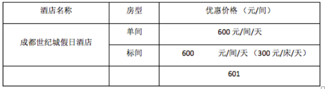 主办方特地给各位代表联系了离会场较近的协议酒店(成都世纪城假日酒店),有需要住宿的代表一定要火速预定了。酒店具体预定信息如下:
