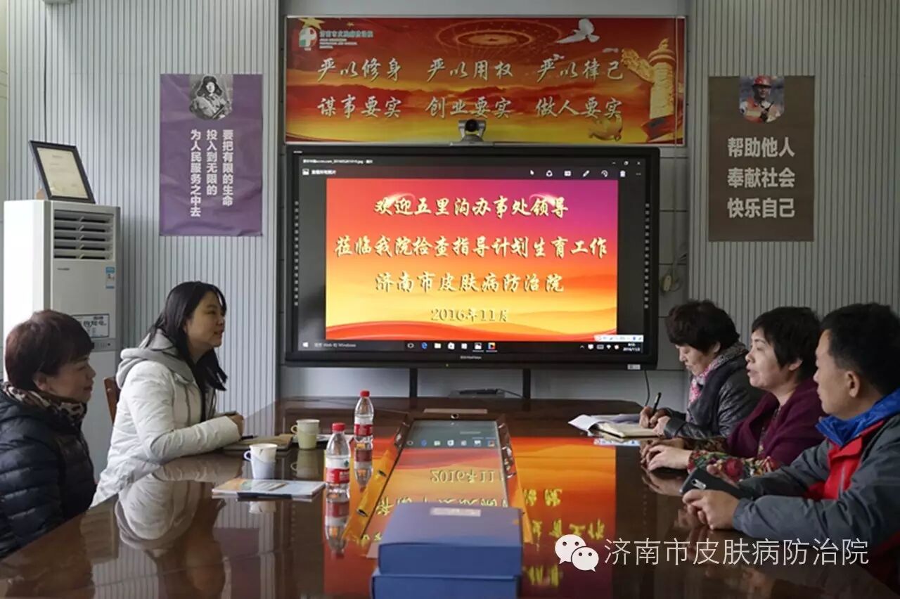 为加强对驻街道单位计划生育工作的管理与指导,11月2日,五里沟办事处领导到济南市皮肤病防治院检查指导计划生育工作。院党委书记、院长秦冬梅陪同检查。