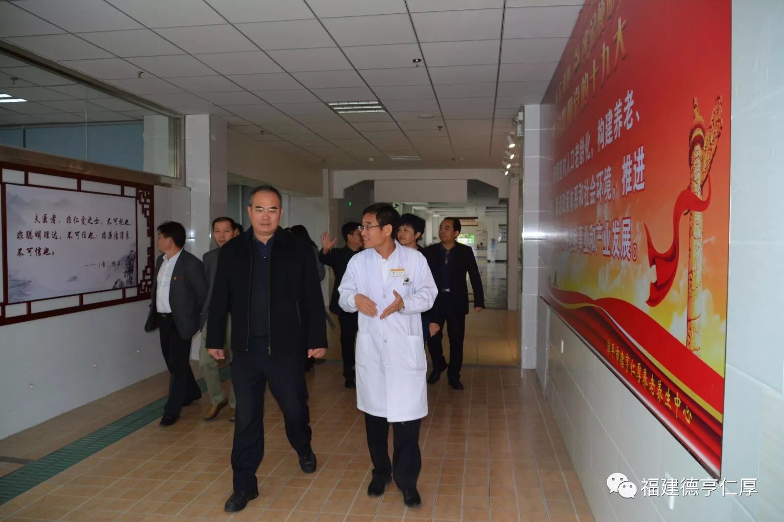 龙岩市卫生和计划生育委员会主任蓝福元一行莅临医养中心,与我方领导就医养融合的工作开展情况进行密切的交谈。探讨当今医养结合的发展现状,建立政府与企业沟通的桥梁。