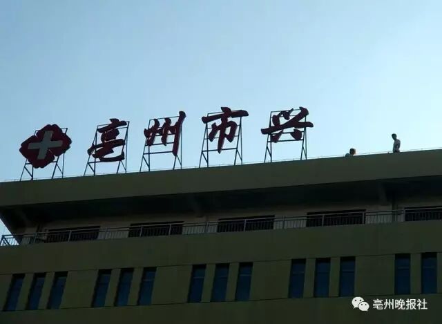 昨天(7月11日)下午,两名工人正在位于市区汤王大道上的兴华医院的楼顶拆除“亳州市兴华妇幼保健院”的牌子,除了楼顶上的这个标识牌,医院南侧悬挂的同样字样的牌子也将在今天被拆除。
