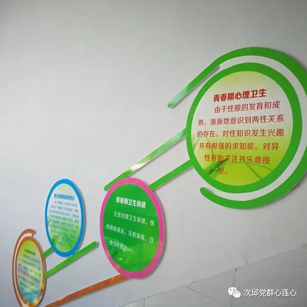 充分利用每一分空间,在上下楼梯之间,精心制作了文化墙,加强了知识宣传,让学生们既养成了文明礼貌的好习惯,又增长了青春健康知识。
