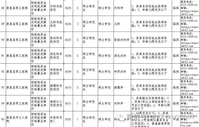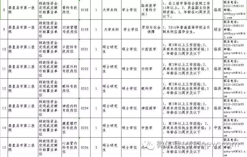 秦皇岛市卫生和计划生育委员会人事科0335-3063953;