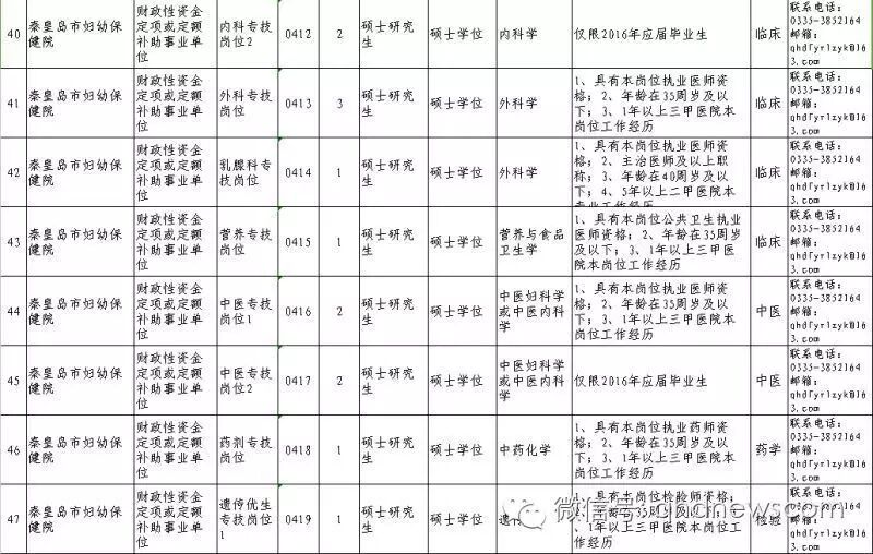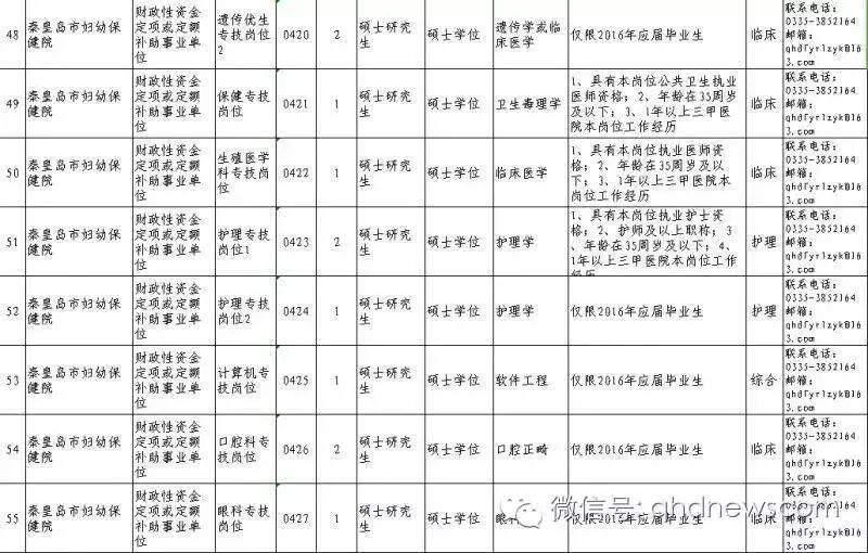 秦皇岛市妇幼保健院人事科:0335-3852164
