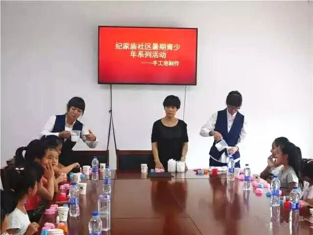 为了满足社区计划生育家庭青少年的文化活动需求,给孩子们提供更多参与实践的机会,纪家庙社区近日举办了社区计划生育家庭青少年暑期实践活动——手工皂制作。