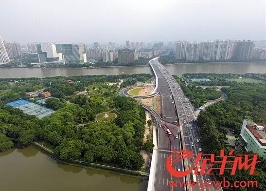 ① 往二沙岛方向,从广州大桥北往西下二沙岛车辆经新桥临时连接转入西侧匝道下二沙岛;