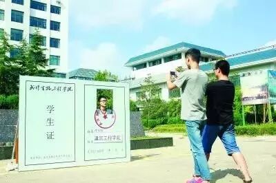 武汉生物工程学院制作了一张高2米、宽1.6米的超大真人版学生证,只要你站在学生证后面拍一张照,一秒变这张真人版学生证的主人。