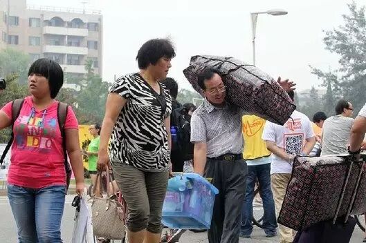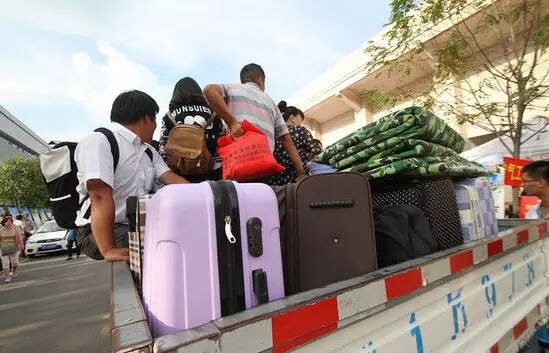 9月4日,山东滨州一高校新生报到人海如潮,大包小包的行李堆满路边。为及时疏导交通,校方在各个路口设立新生接待点,并出动几辆大卡车,24小时轮番运送学生及家长。