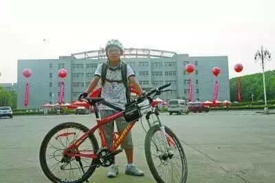 武汉汉口学院2015届新生李茂,花了3天,骑车300公里从河南信阳到湖北武汉,没进校门就成了校园风云人物。