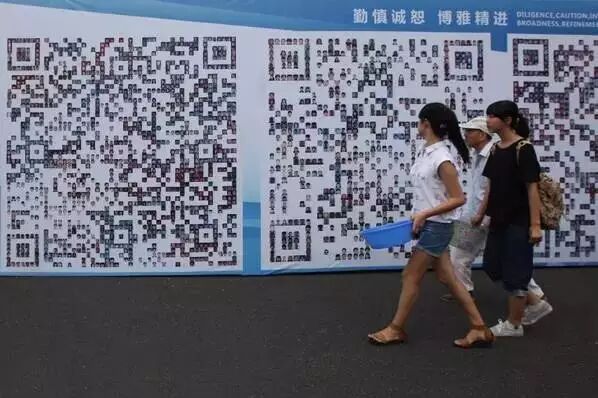 杭州师范大学不甘示弱,用4000多个新生的笑脸做成了四张真人二维码,用手机一扫便出现了学校的官方微信、微博,以及“杭师大学生工作”和“杭师大本科教学”官方微信。