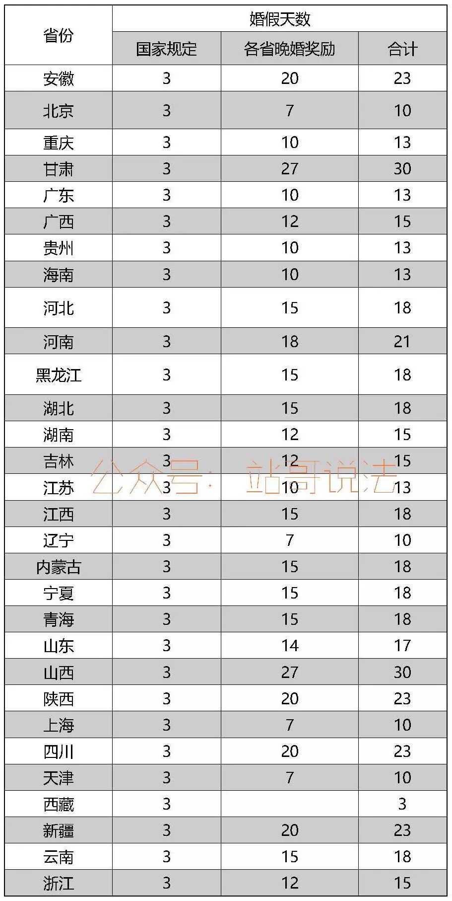 此外,各省市还有相应的晚育奖励假,具体详见下表: