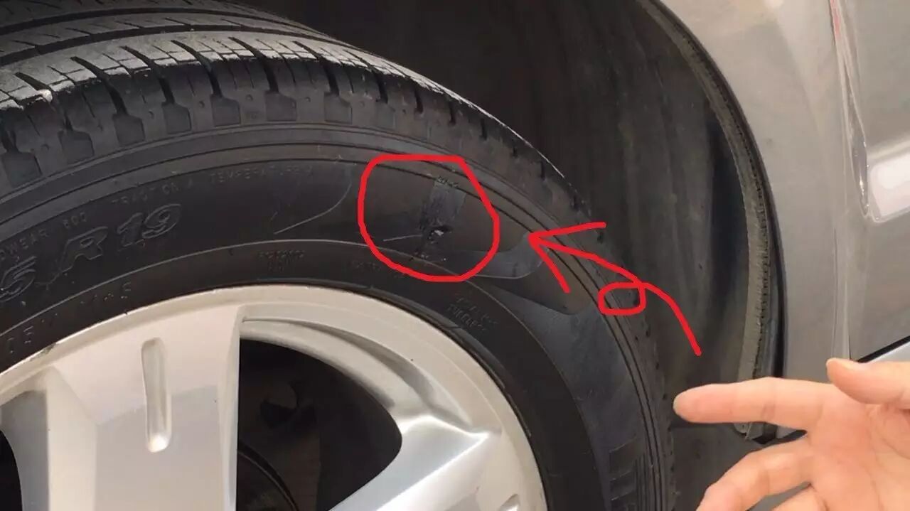 酷威右后轮的侧壁有一个非常明显的刮伤,比较深。而侧壁是无法修复的,已经不适合继续使用,要换轮胎。
