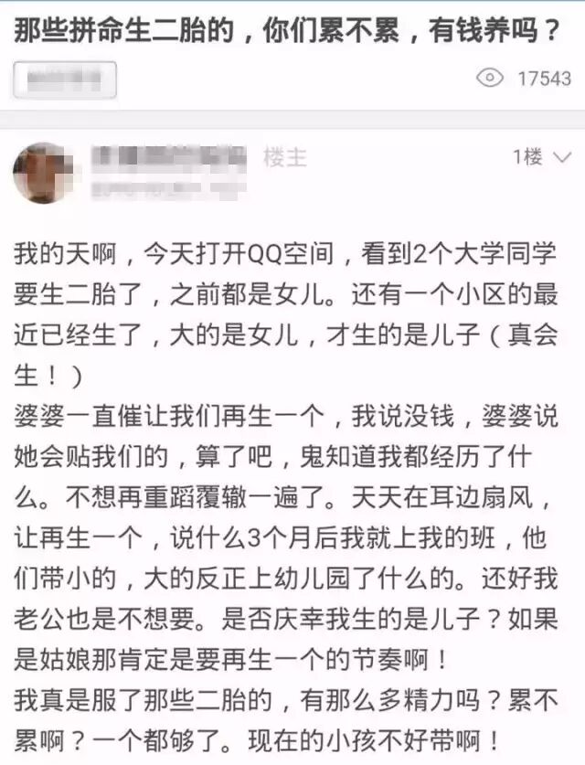 网上一个妈妈对二胎家庭的疑问